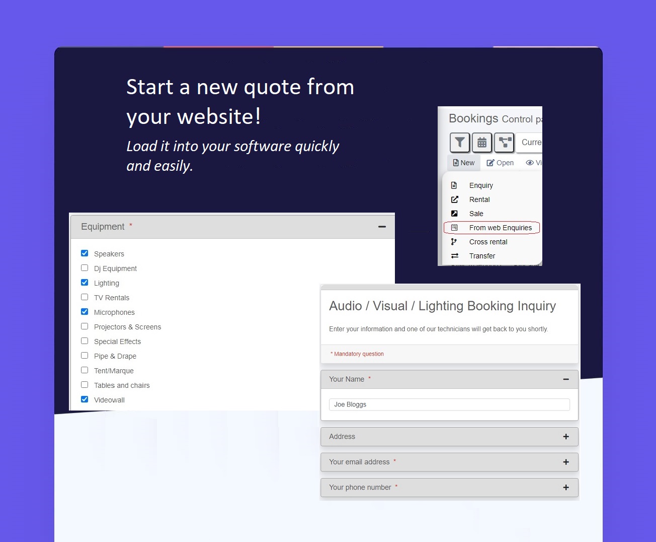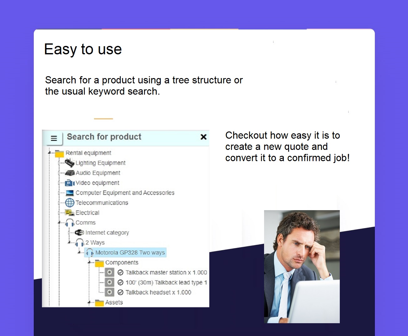Create a new quote quickly and easily, intuitive interface, simple English terminology - a rack is a rack, a road case is a road case.
